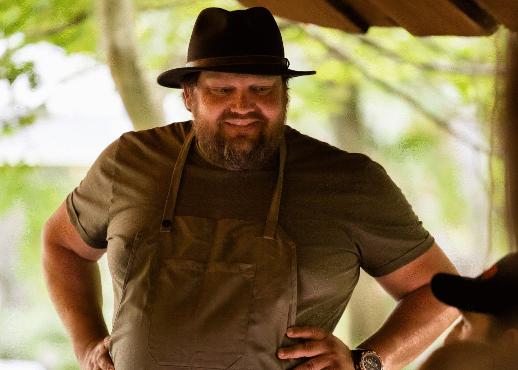 Thomas er gastronom af både uddannelse og livspassion. Med skarpe smagsløg og æstetisk sans skaber han oplevelser, der rammer alle sanser. Han tænker altid helhed – naturen skal være en del af måltidet, både i stemningen og på tallerkenen. Hans filosofi er enkel: